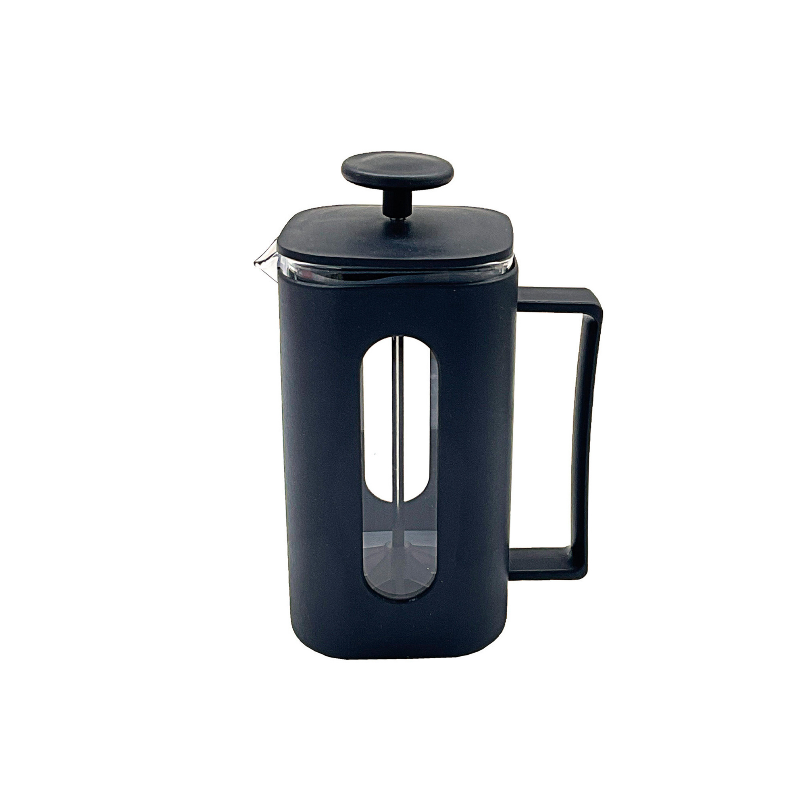 Biradlı GRV-B20 French Press, 350 ml kapasitesi ve köşeli mat siyah gövdesiyle modern ve şık bir tasarım sunan, kaliteli malzemeden üretilmiş bir kahve demleme aletidir. Ön yüzeydeki oval cam penceresi sayesinde demleme seviyesini kolayca takip edebilir, ergonomik tutamağıyla güvenli bir kullanım deneyimi yaşayabilirsiniz.